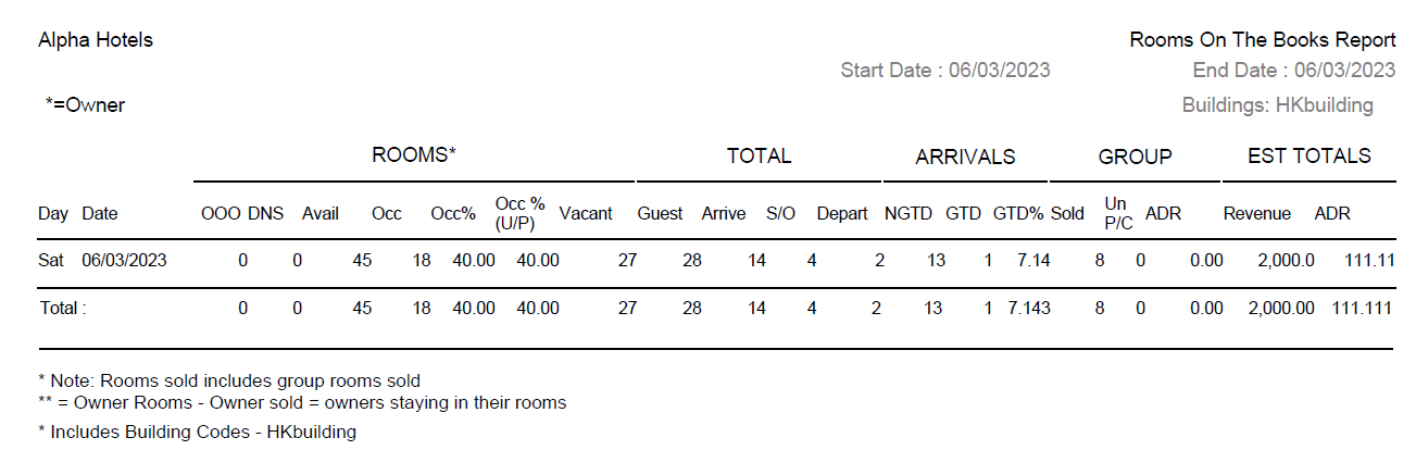 Select the reservation status that must be considered in the report. |