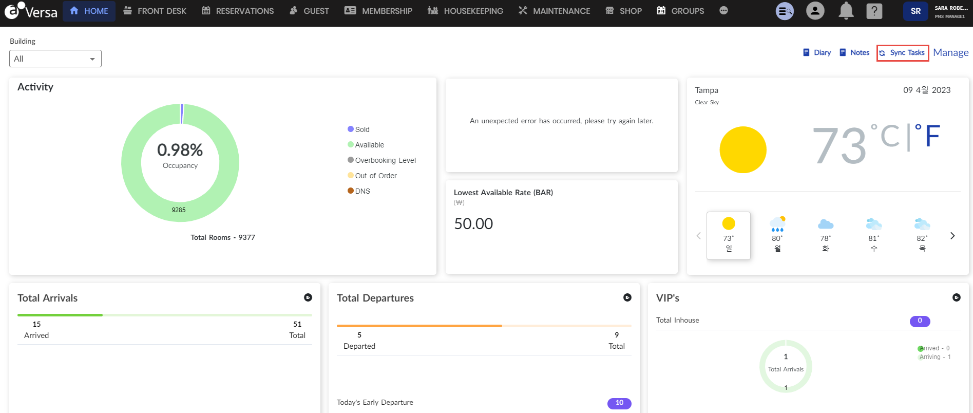 The Sync Tasks option in the Home screen allows users who have logged on to their Microsoft account to automatically sync tasks created for individual reservations and group bookings to Microsoft Planner. Earlier, created tasks were synced to Microsoft Outlook.